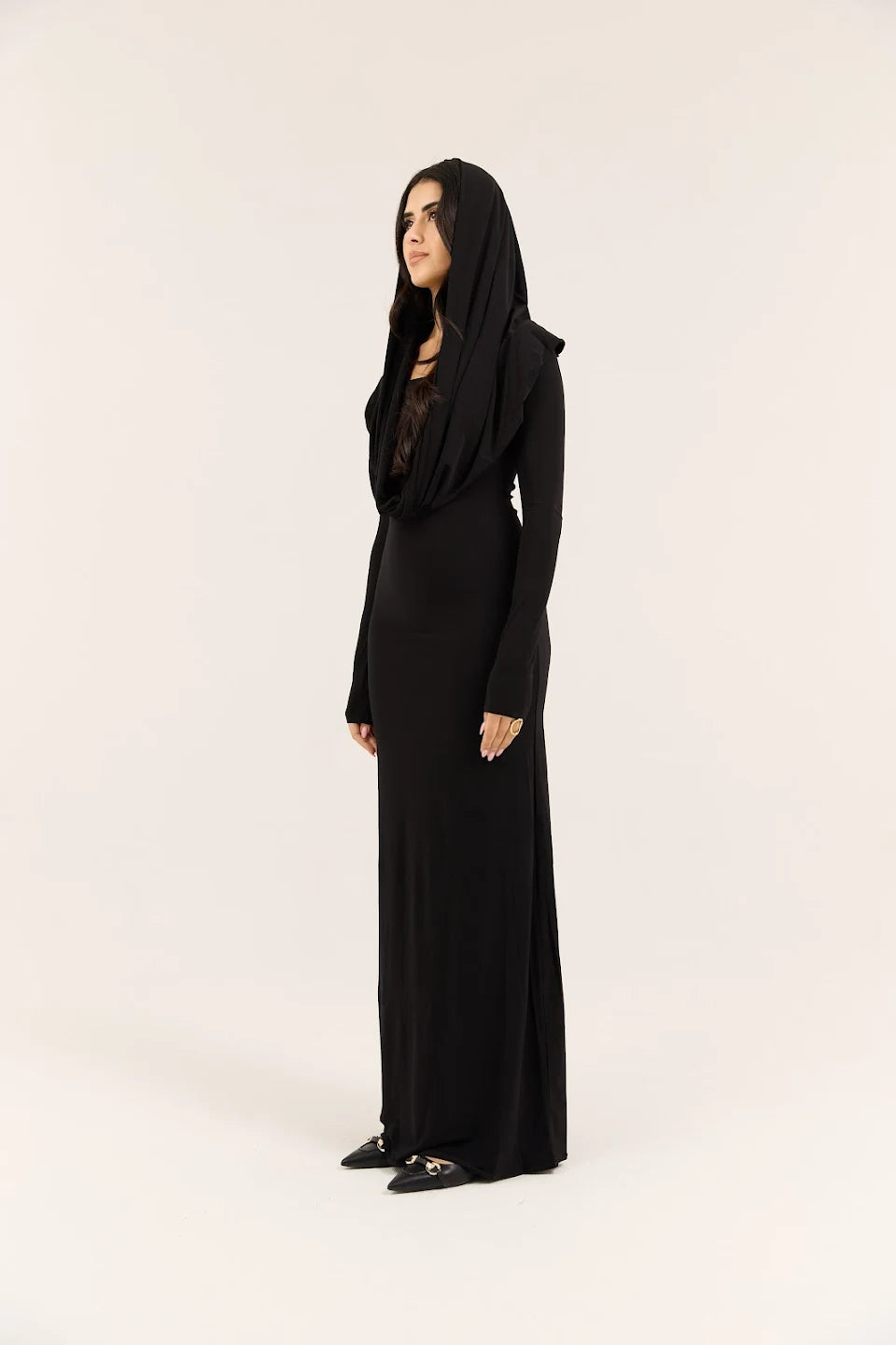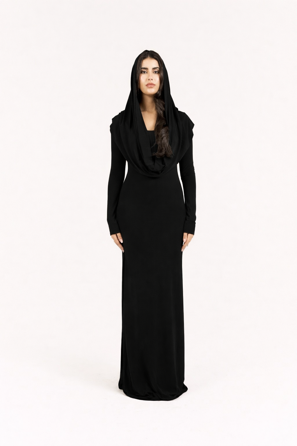 Meet our Transforming Dress β a versatile sculpting silhouette designed to be worn in different ways. Crafted from premium ultra-stretch Korean fabric, it adapts effortlessly to your style. Wear it with the hood for a modest look or without the hood for a clean, refined silhouette. Perfect for Dubai days and evenings.
