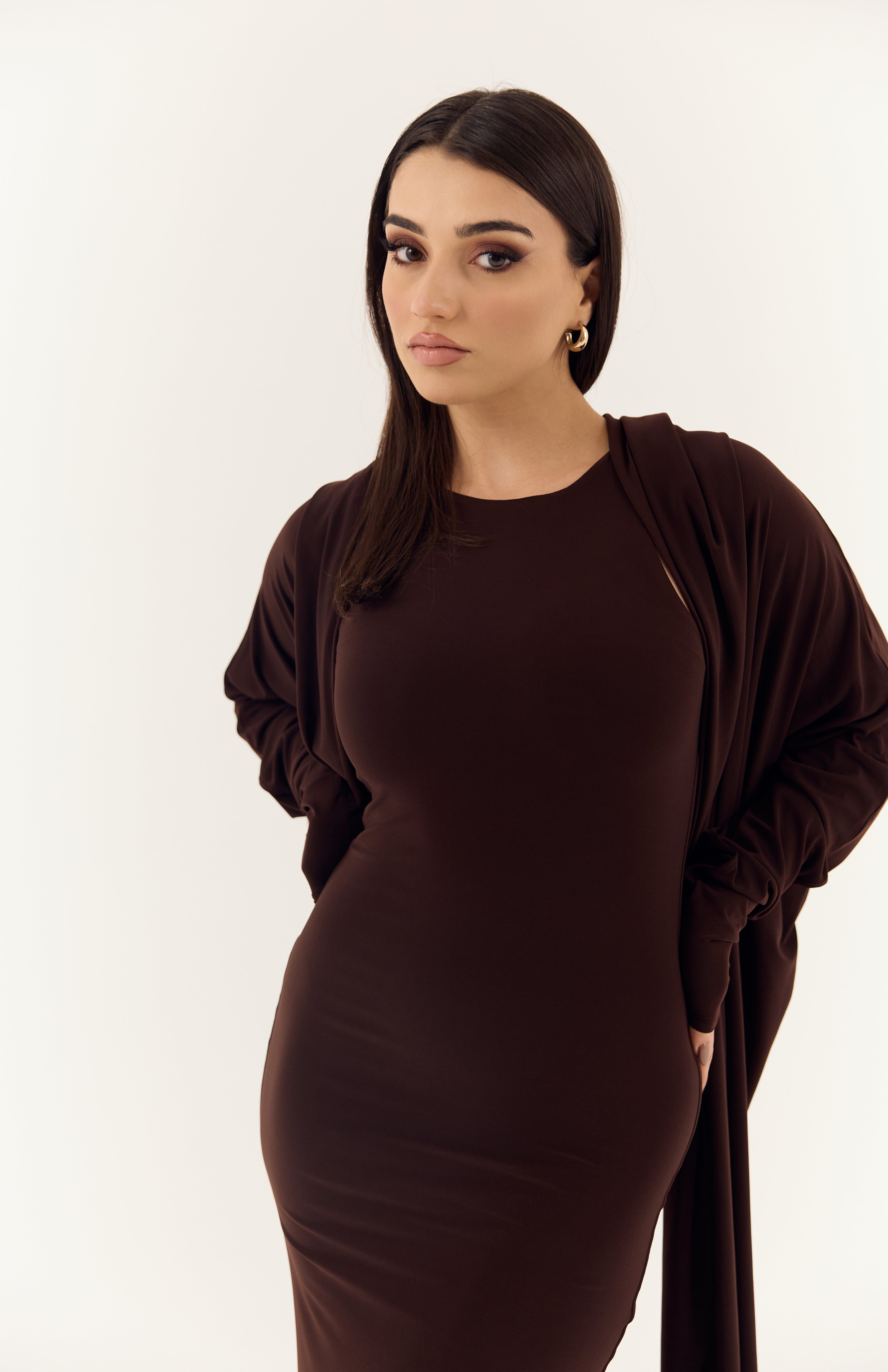 Lightweight and versatile, this cover-up is crafted from premium Korean stretch fabric that drapes beautifully over any silhouette. Designed to be worn with or without the hood, it offers a modest yet modern finish. Effortlessly pairs with our Basic Dress to create a sleek, refined look.