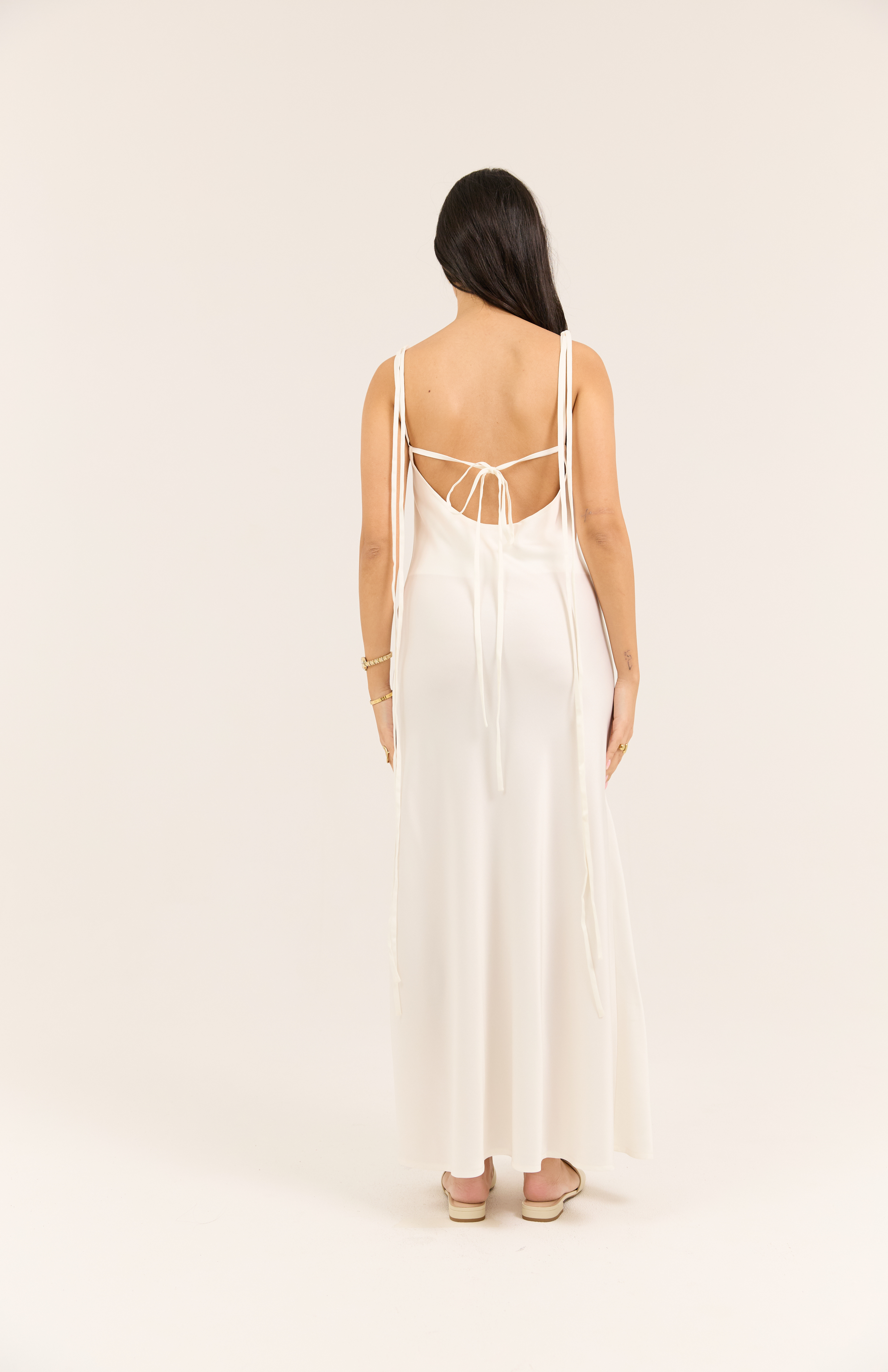 - Four-piece set: slip dress, bandeau, abaya & belt